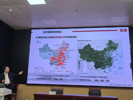 贺教授介绍了地理学、经济地理学的核心内涵。其中,空间分布差异是研究者需关注与识别的关键点。关于“地理学者如何理解经济活动的空间差异性”,贺教授以区位、地方、区域与网络等核心概念,为同学们构建了地理学“点—线—面—网络”的空间分析框架。理解经济活动的空间差异的思维框架及使用价值,每一个“点-线-面-立体网络”都是经济、社会、环境、文化等相复合的产物。同时,经济地理学是一门“经世”的学科,为不同尺度下的经济发展与空间治理奠定理论基础,提供理论与方法支撑。经济地理更是一门“致知”的学科,关注世界经济如何从一种差异走向下一种差异。