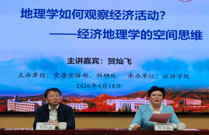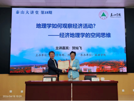 4月18日上午,第十八期“泰山大讲堂”高端学术讲座在文旅楼1009室圆满举行。北京大学博雅特聘教授、教育部地理科学类教学指导委员会主任贺灿飞教授应邀作题为《地理学如何观察经济活动?——经济地理学的空间思维》的专题报告。